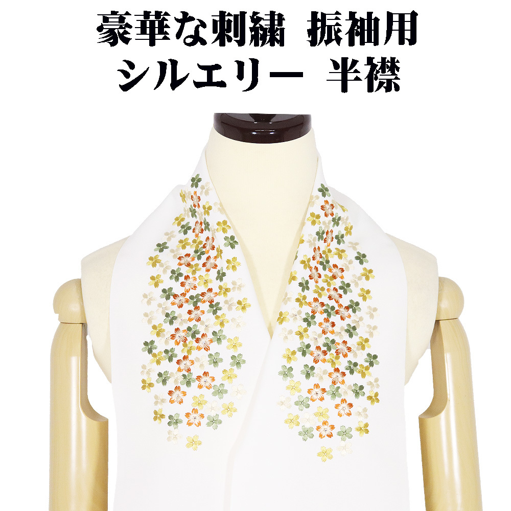 - \ 本日の特売品 / シルエリー Silelly 振袖用 刺繍半襟 ポリエステル 白 ホワイト 刺繍 桜 ラメ入り はんえり 送料込み ki31185 新品