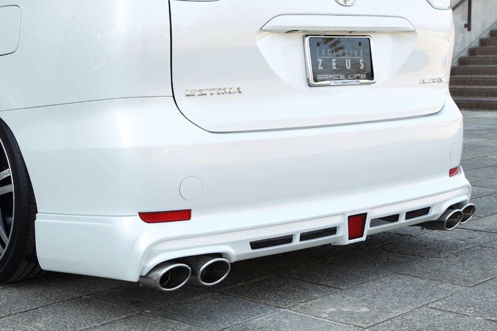 - M'z SPEED リアアンダースポイラー(マフラー4本出し用) ホワイト (070) FRP エスティマ 50系 H24.5~H28.5 アエラス