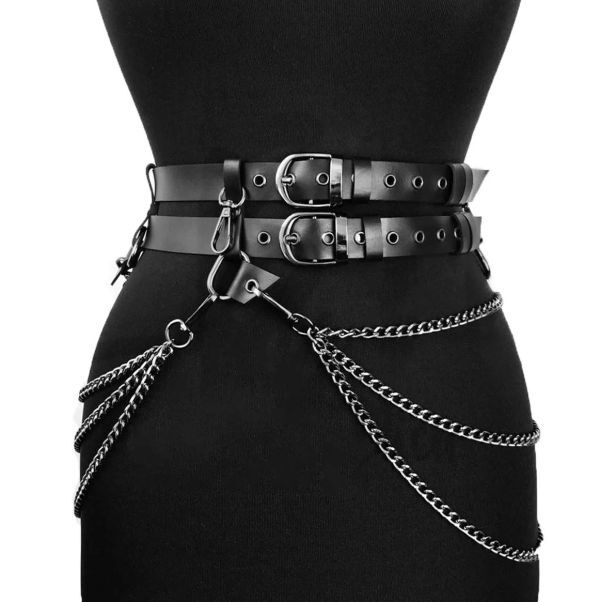 > 2列ダブルベルトに取外し可チェーン3重×3ターン タッセル,調節可パンク装飾ゴシックアクセサリー,ファッション ★鄭11 [丨1[丨3