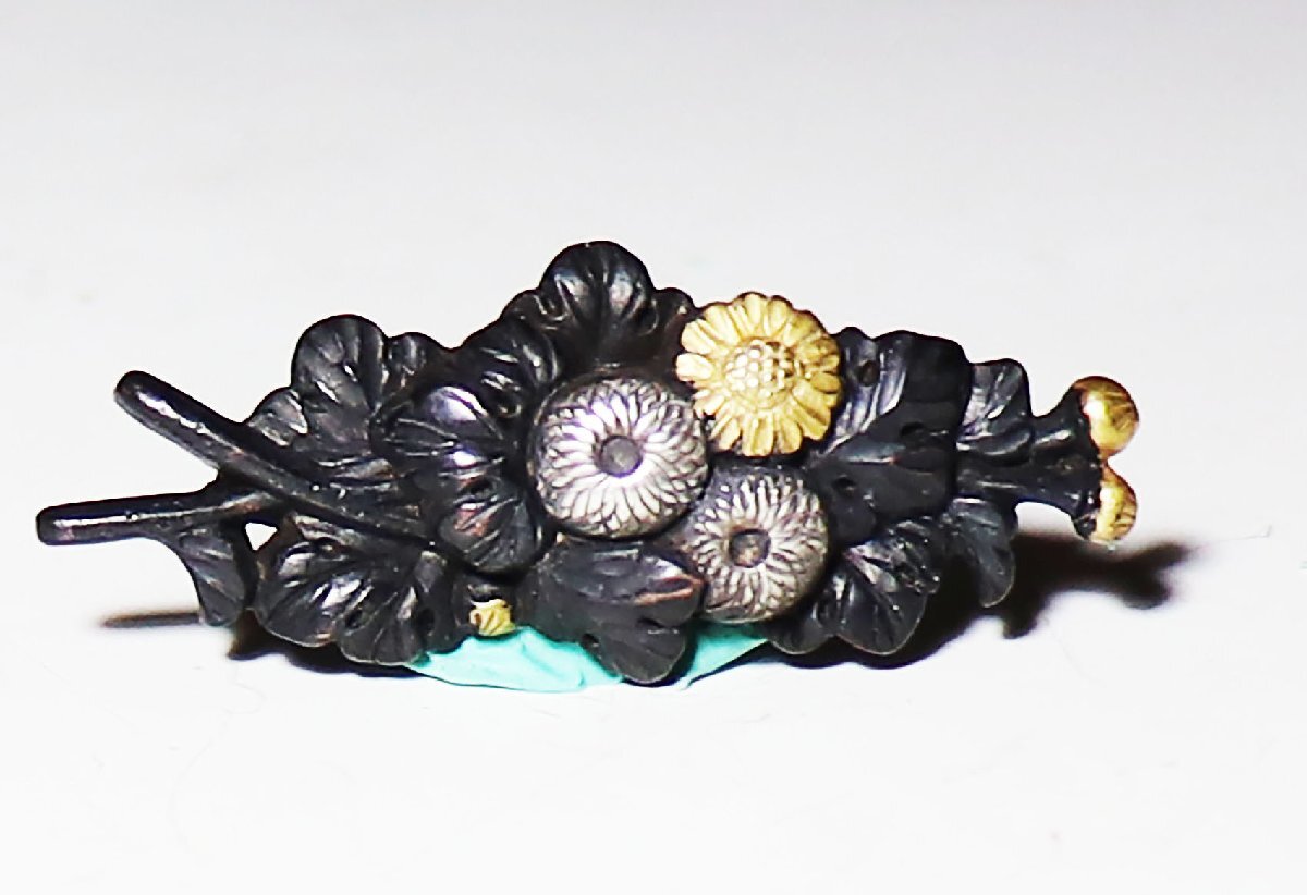 - 【桃】刀装具:金工銅地金銀象嵌野菊片目貫