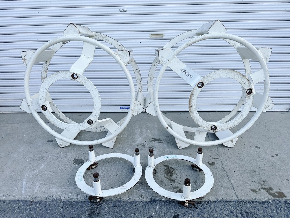 - 中古 トラクター 鉄車輪 左右セット 台座付き KE4.MT155.8X18 直径約750mm かご車輪 温田 水田 農機具 パーツ 部品 茨城 1007あわ5 I外 西