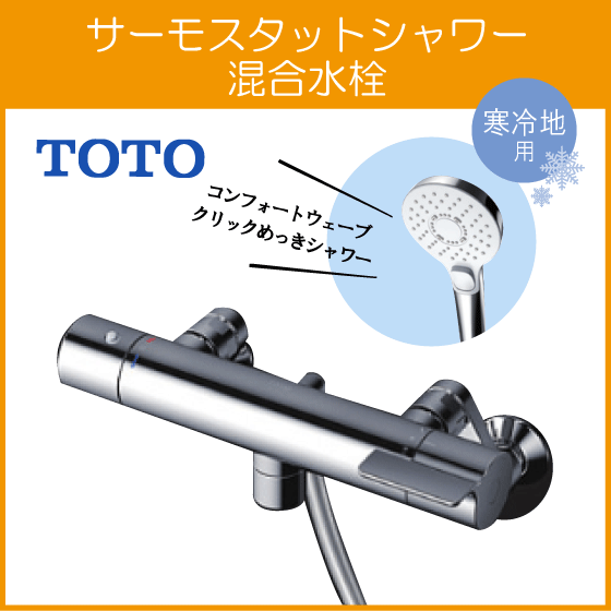 - 壁付サーモスタット混合栓 サーモシャワー 吐水パイプ 0mm コンフォートウェーブクリック 寒冷地仕様 TBV03451Z TOTO GGシリーズ