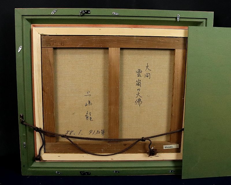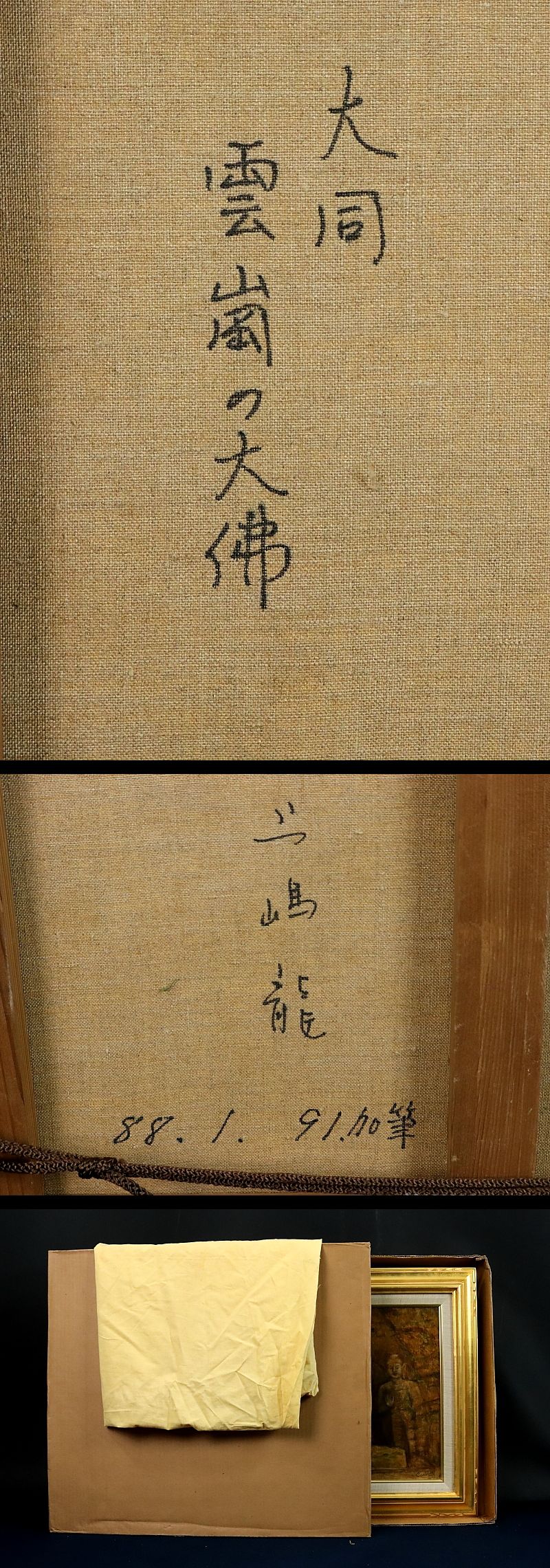 - 11165■【真作】上嶋龍 「大同 雲崗の大佛」 キャンバス F8号 油彩 創造美術協会 奈良の人 額装