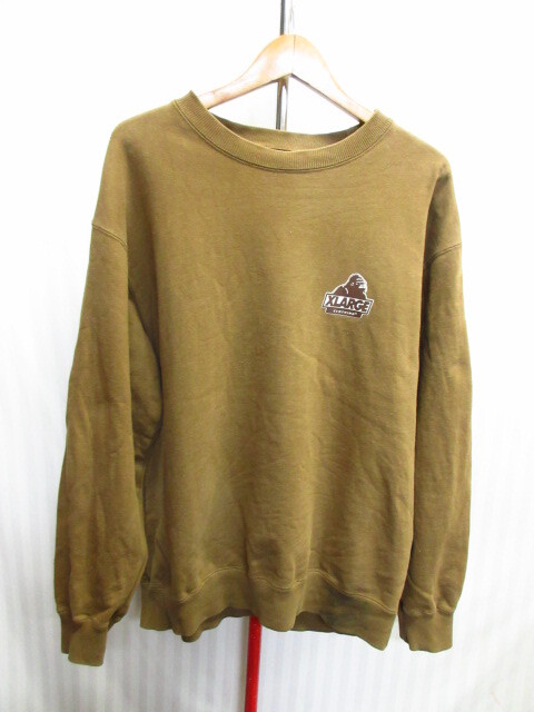 > X-LARGE エクストララージ トレーナー メンズL 茶 ロゴ付きスウェットトレーナー ジャージトップ 長袖カットソー クルーネック10073