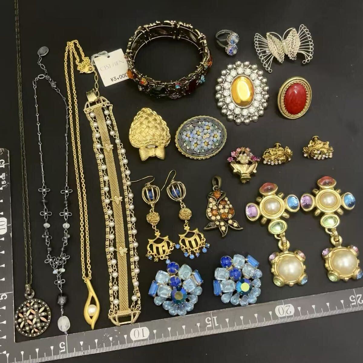 > 1円 ヴィンテージアクセサリー 17点まとめ 約305g 細工極め ネックレス ブローチ マルチカラーストーン Goldette/ITALY/Roxanne Assoulin等