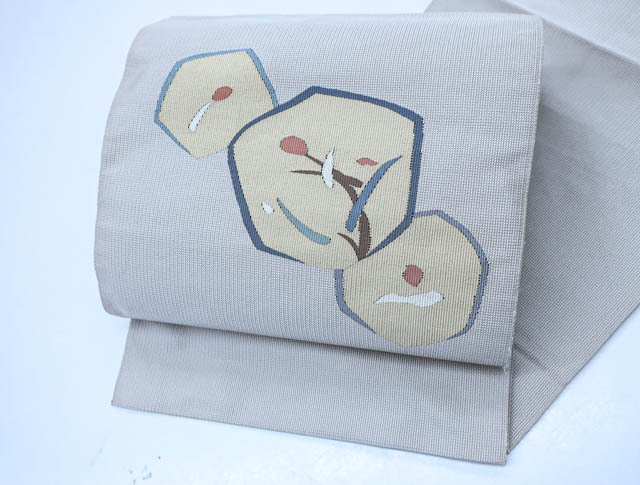 > 《京都一輝堂》【着物】八寸名古屋帯 すくい織 手織 お太鼓柄 亀甲文 24B-854