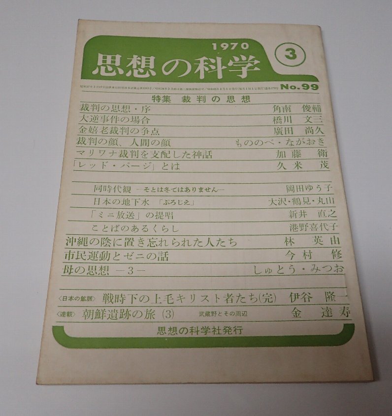 ●「思想の科学 NO.99 1970年3月」 裁判の思想 思想の科学社