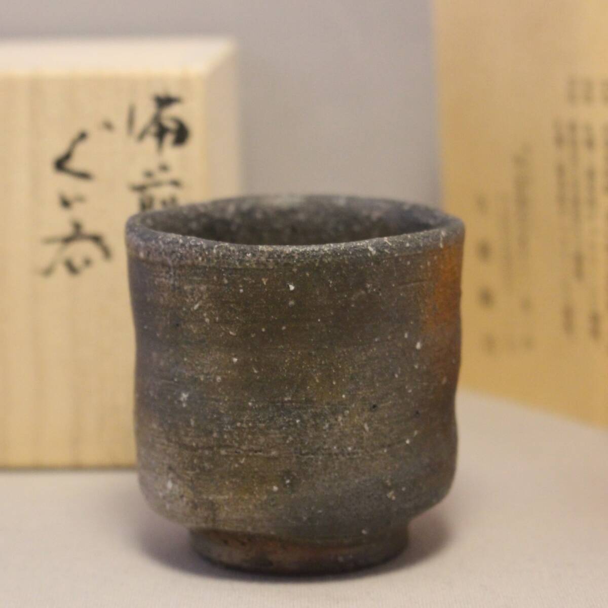 - 備前焼 剛司 作 酒呑 ぐい呑 ぐいのみ 酒器 桟久コゲ 桐箱 新品