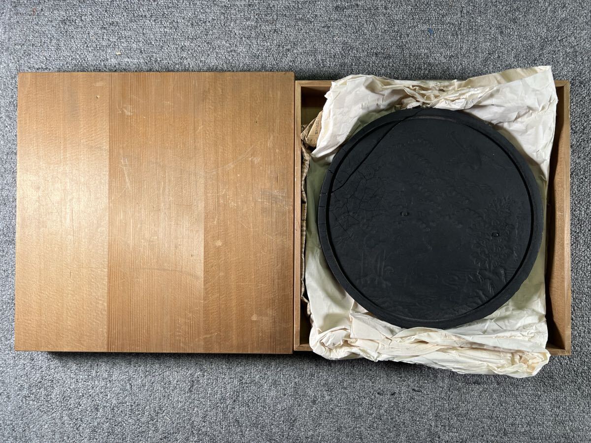 - 松鶴図古丸墨、保存木箱入、大型墨、重949g、民国頃製、書道文房、和本唐本曹素功胡開文古梅園中国