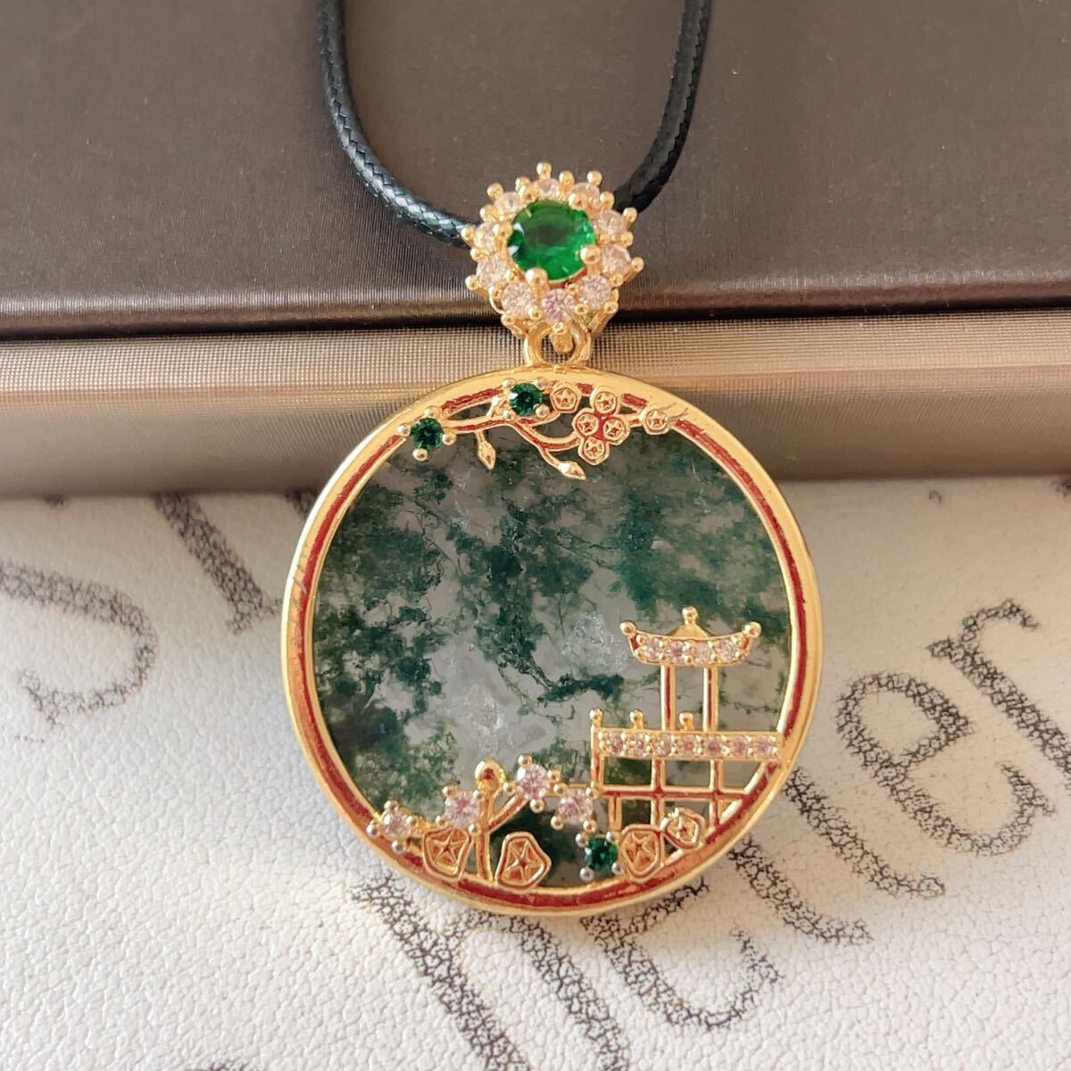- 訳あり◇モスアゲート水草瑪瑙◇ネックレス◇パワーストーン◇苔瑪瑙(こけめのう)◇天然石◇巾着袋付き◇プレゼントにも019P101301