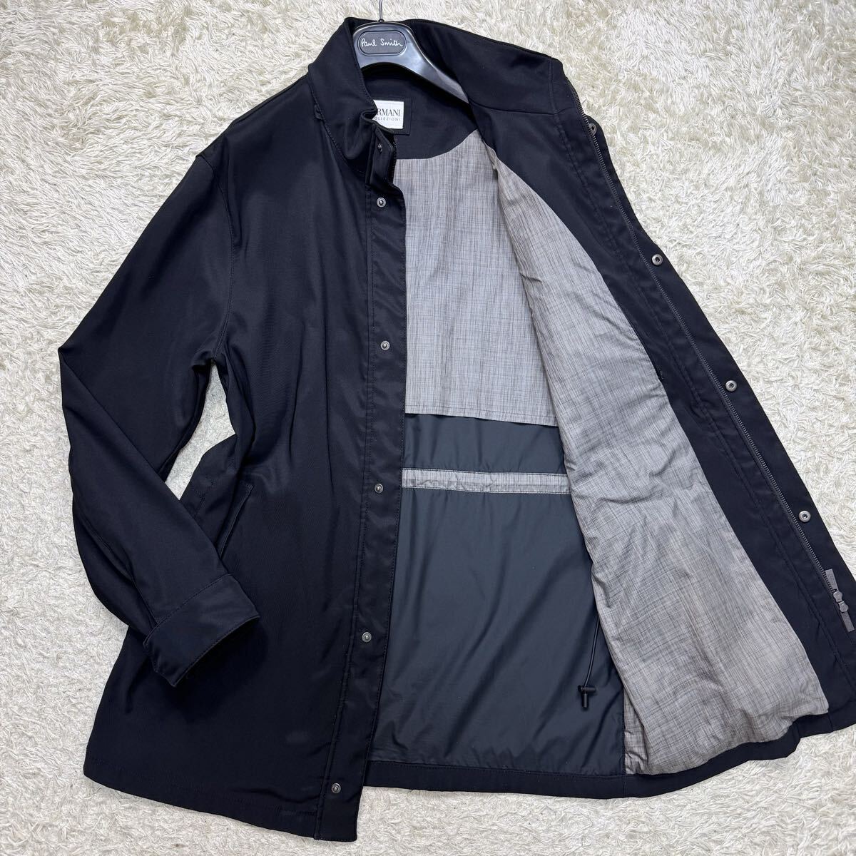 > 美品◎希少XXXL◎アルマーニコレッツオーニ ARMANI COLLEZIONI ブルゾン コート ブラック 黒 撥水 メンズ ビジネス ジャケット フード