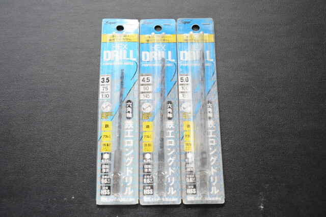 > ライト精機株式会社 Super 六角軸ドリル 鉄/アルミ 3.5mm/4.5mm/5.0mm ロング 合計3本SET 未使用品 1013-9 検索用語→Aレター100g10内