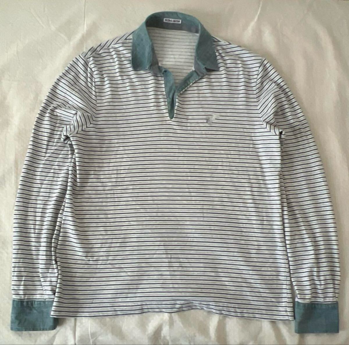 - MICHAEL BASTIAN ボーダー 長袖 襟付き カットソー ロンT