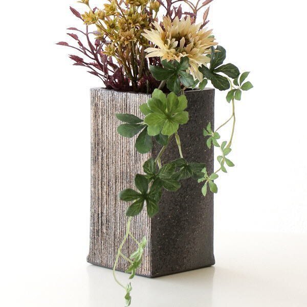 - 花瓶 花器 陶器 おしゃれ 和風 モダン ひし形 フラワーベース シック シンプル 信楽焼 線紋長方花入 菱形 送料無料(一部地域除く) soh8312