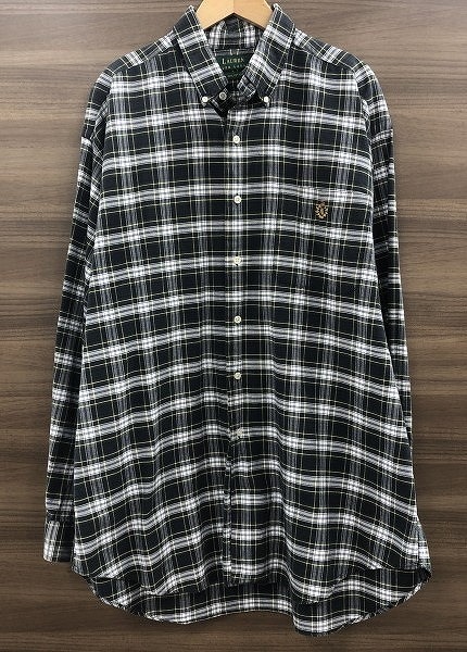 - 期間限定セール ローレン ラルフ ローレン LAUREN RALPH LAUREN メンズカジュアルシャツ 長袖 Lサイズ 緑系 チェック柄