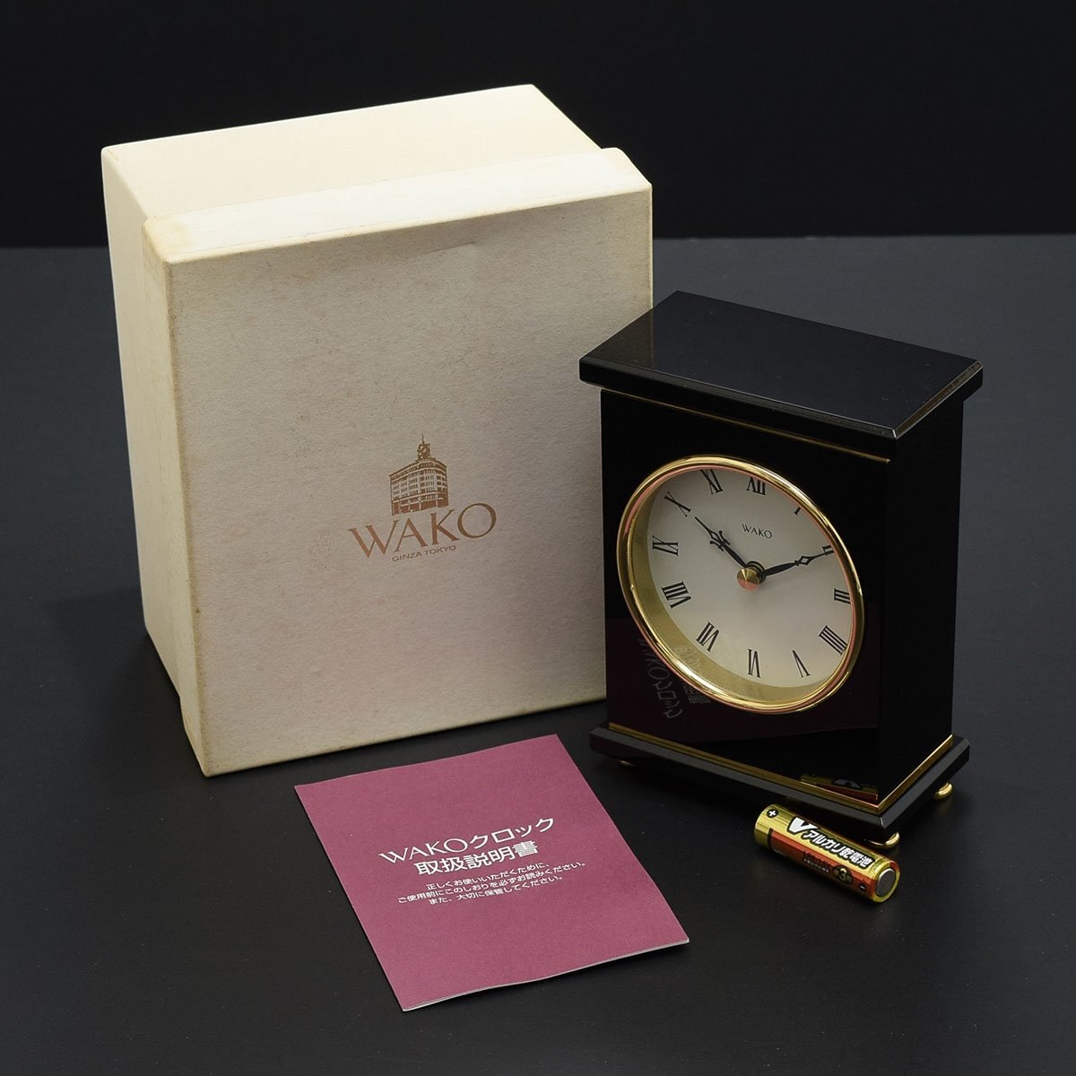- ●531791 WAKO 銀座和光 ワコー 置時計 テーブルクロック NB6002R 動作確認済 単三電池1本付属(中古品おまけ) ブラック×ゴールド