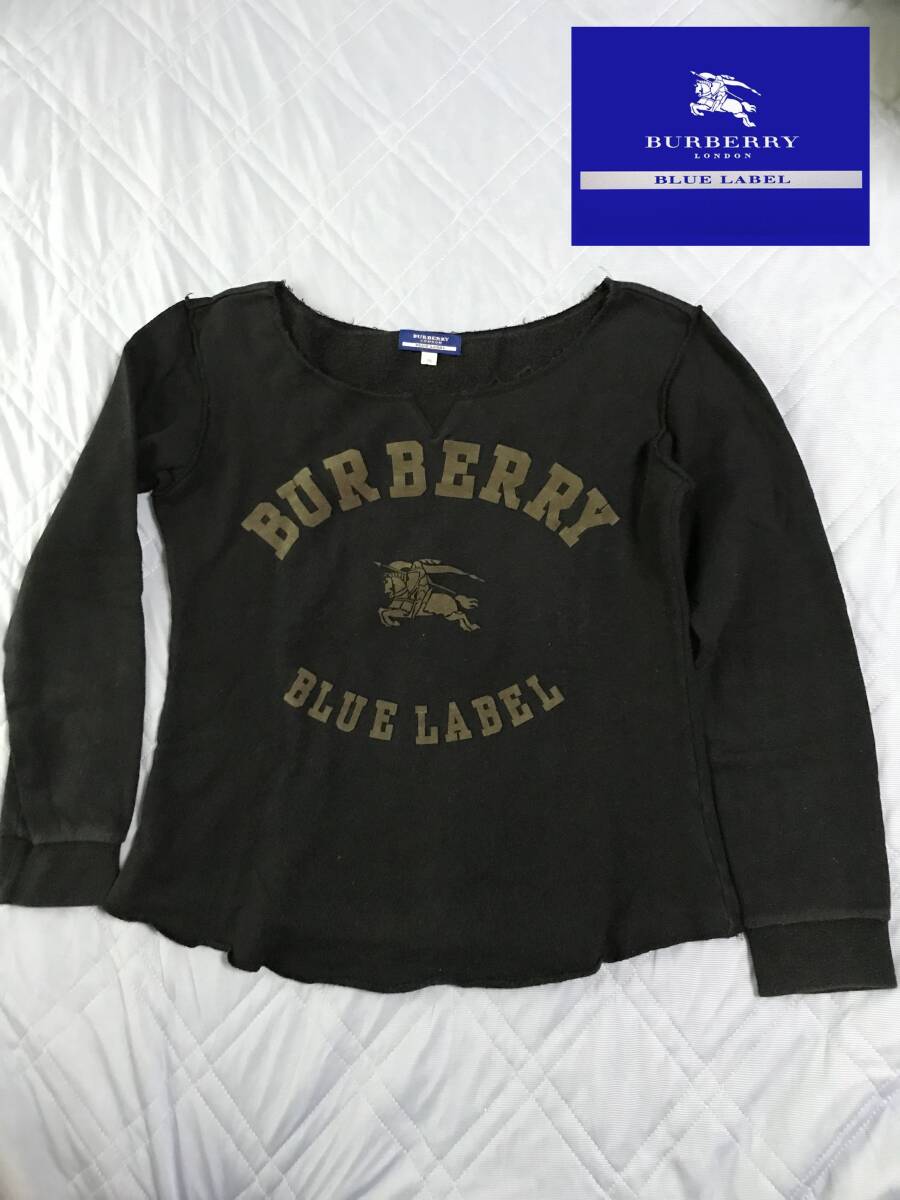 - バーバリーブルーレーベル 黒すそ切りっぱなし風長袖トレーナー 38 t137
