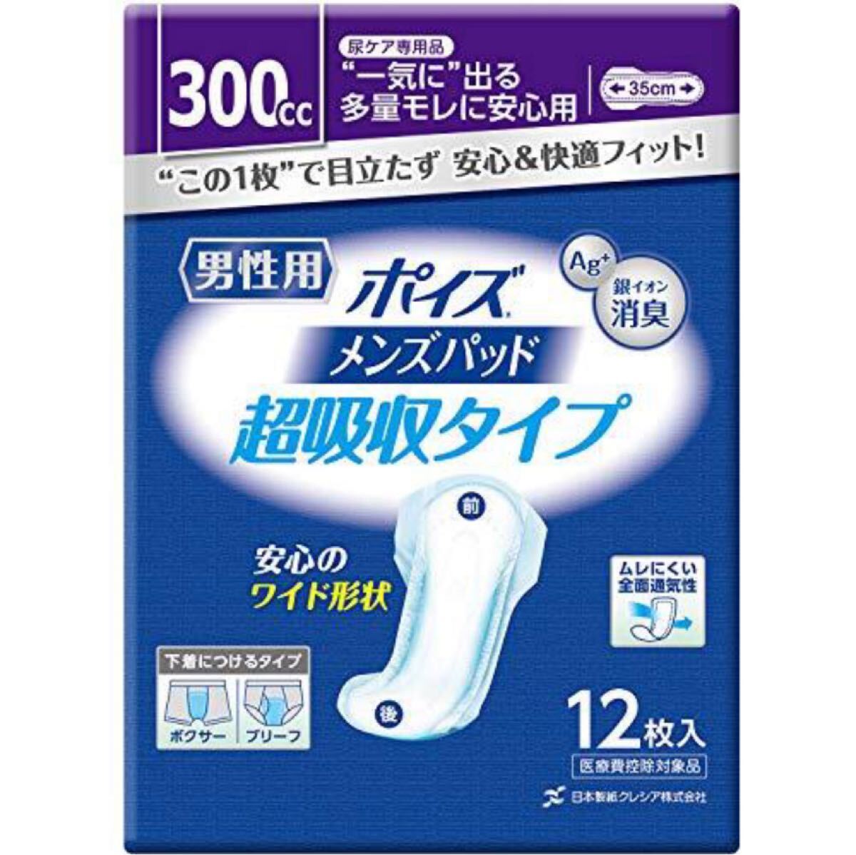 - ポイズ メンズパッド 多量用・超吸収タイプ 吸収量300cc 12枚 (尿もれが少し気になる男性に)