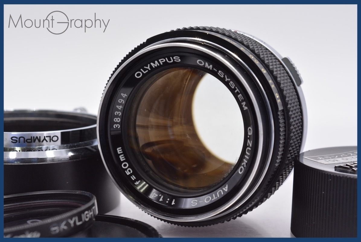 > ★実用美品★ オリンパス Olympus OM-SYSTEM G.ZUIKO AUTO-S 50mm F1.4 前後キャップ&レンズフィルター、レンズフード付 ★完動★ #yk4750