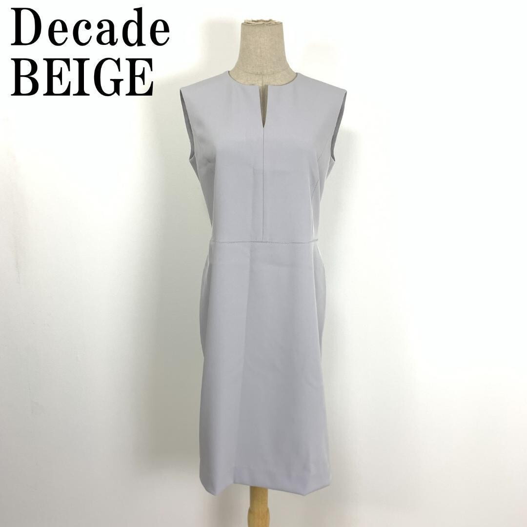 - LA7379 25SS ベイジ BEIGE Decade Vカットネック ポケット無し フォーマル LUIZA ノースリーブワンピース グレー ポリエステル 6