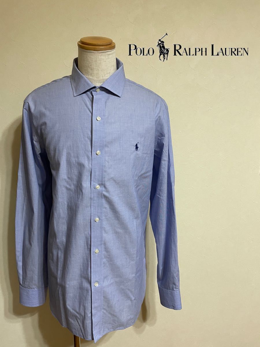 - 【美品】Polo Ralph Lauren ポロ ラルフローレン カスタム フィット イージーケア コットンシャツ トップス ビッグサイズ 17/43 長袖 青