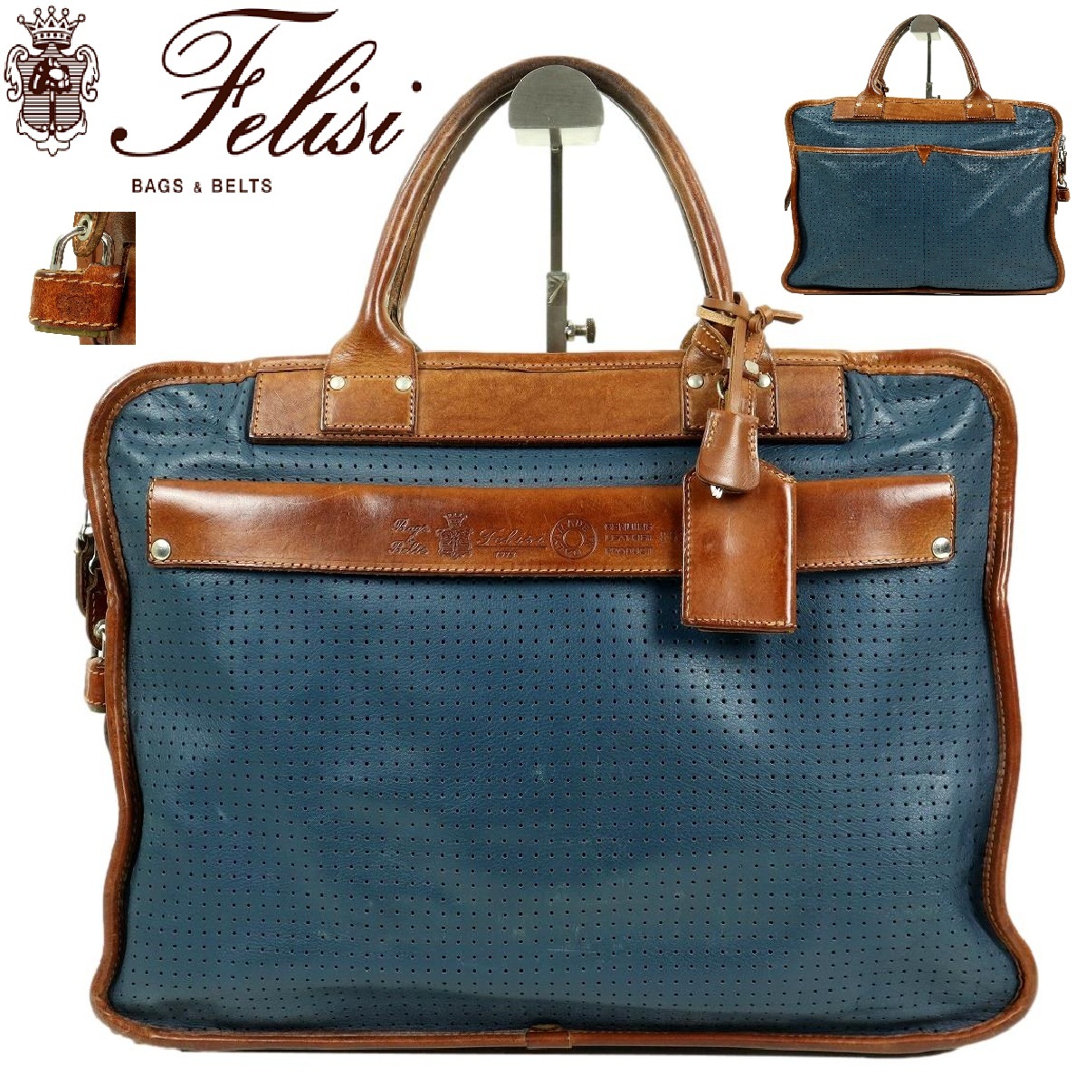 - 【M435】【鍵付】Felisi フェリージ ビジネスバッグ ブリーフケース 書類カバン オールレザー パンチングレザー 8637/4