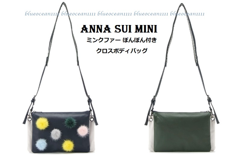 > 大人もOK!新品 9,620円【アナスイミニ】ぽんぽんミンクファー付ロゴストラップショルダーバッグななめ掛けバッグ スカートパンツ 140 150cm