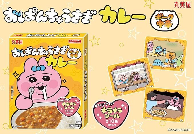 - 4個セット★おぱんちゅうさぎカレー ポーク中辛 160g 丸美屋食品工業 オリジナルキラキラシール1枚入り(全10種