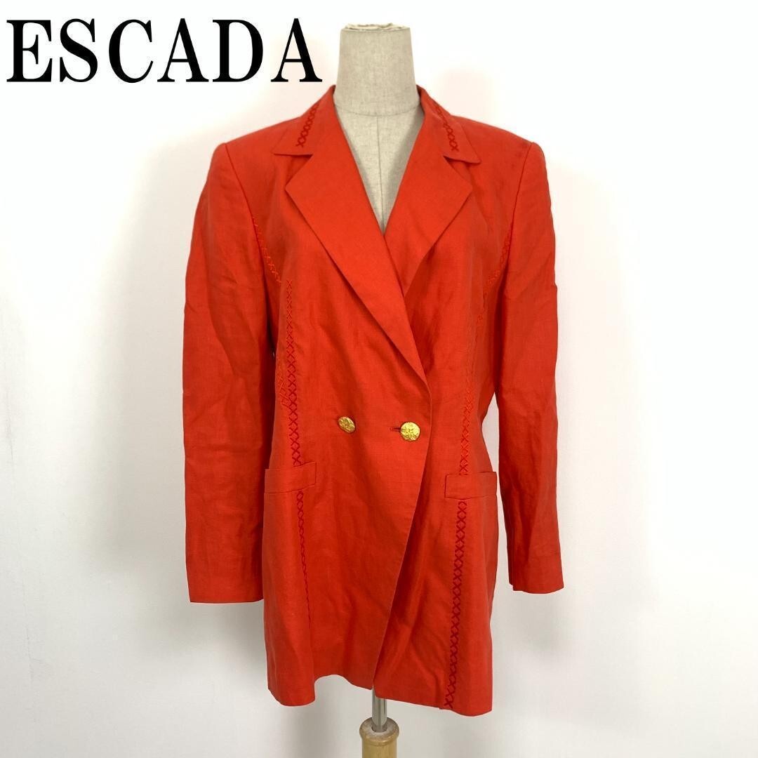 - LA7450 エスカーダ ESCADA 麻100% ゴールドボタン 朱色 リネン ロングテーラードジャケット オレンジ 38