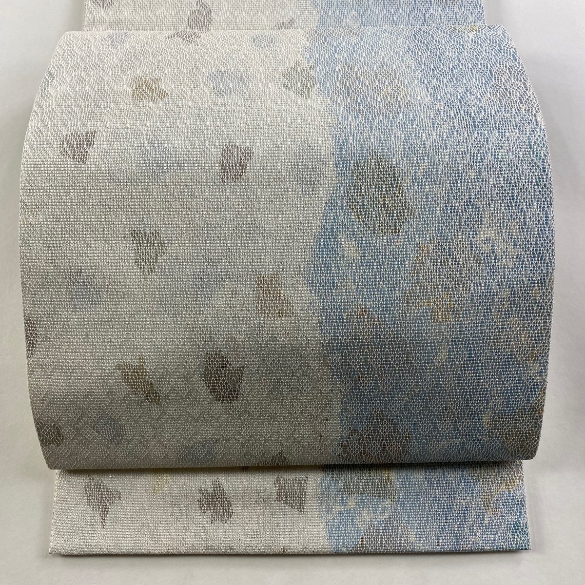 - 【美品】 袋帯 秀品 幾何学模様 金銀彩 灰白 六通 正絹 【中古】