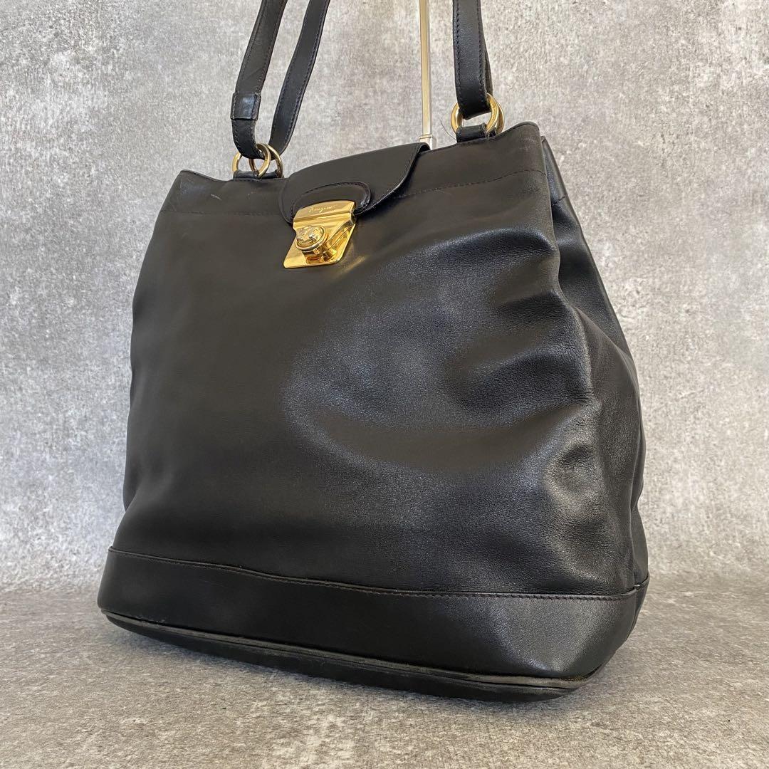 - フェラガモ トートバッグ オールレザー 金具 ブラック 肩がけ可 A4