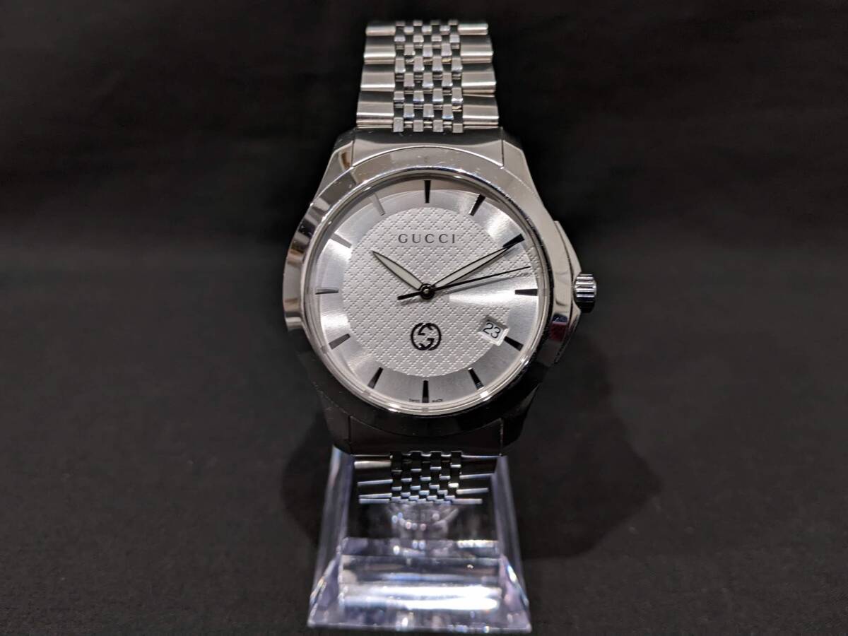 > 【68110】1円~ GUCCI グッチ Gタイムレス クオーツ 126.4 シルバー文字盤 稼働品 腕時計 時計 メンズ コレクション