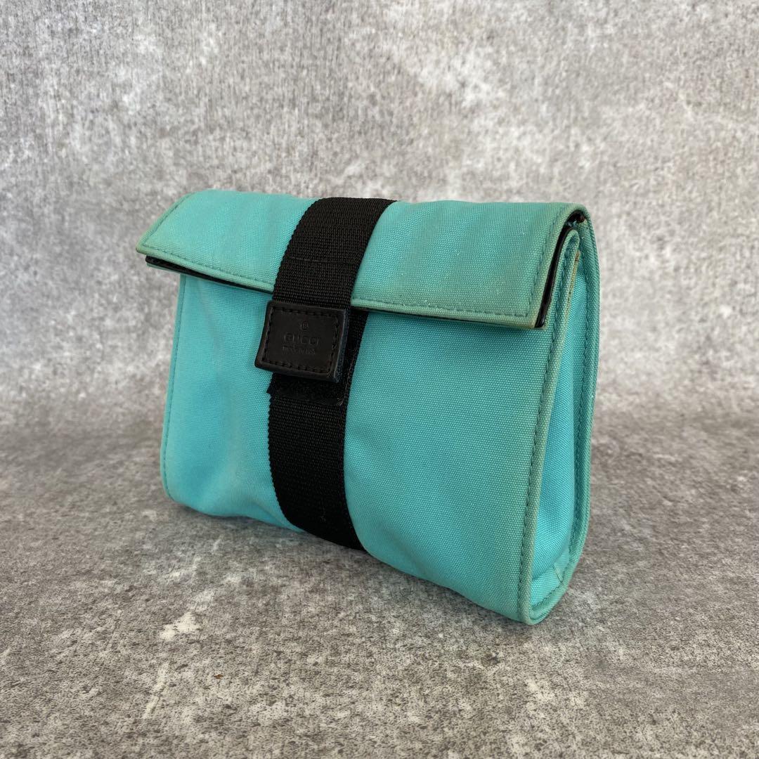 - GUCCI グッチ ポーチ ナイロン ロゴ ブルー 水色