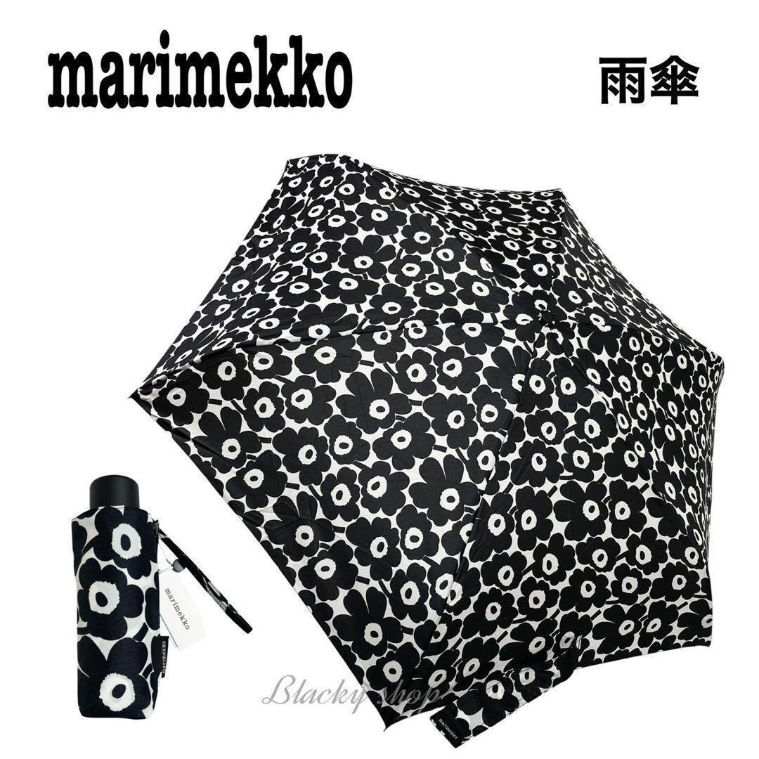> marimekko マリメッコ 折り畳み傘 雨傘 ミニ マニュアル ナノ ウニッコ 未使用 タグ付き ブラック× ホワイト 軽量 コンパクト 花柄