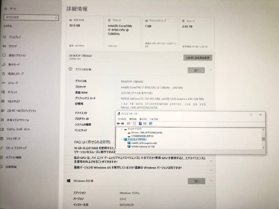 - 美品 iiyama イイヤマ デスクトップPC Windows10Pro i7 9700 3.00GHz 32GB HDD2TB SSD256GB GT 730 PRO-Gaitame.6 v5 Y10001S