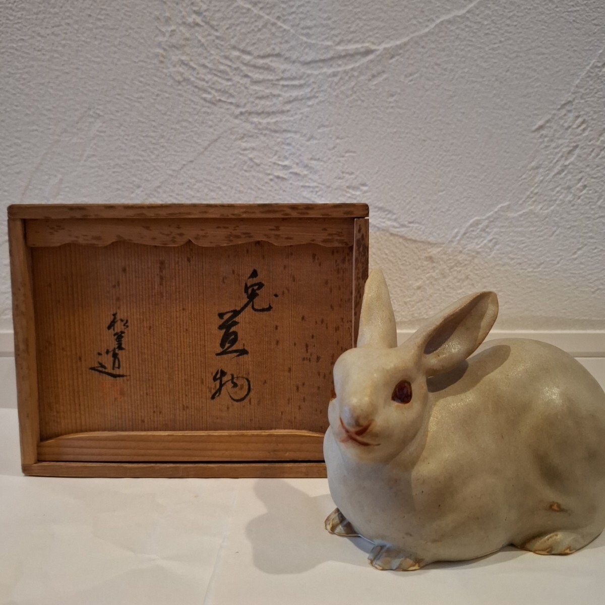 - 兎 作家物 置物 共箱 約H11.8cm×16.5cm×9cm