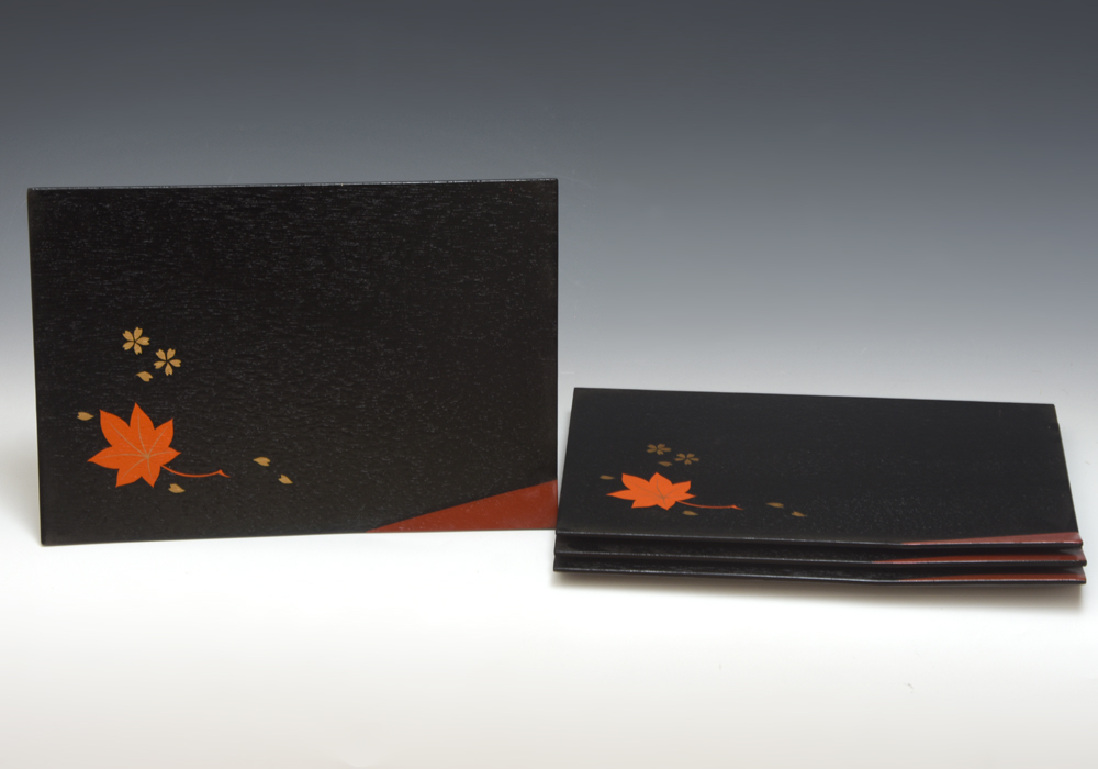 - 雲錦蒔絵 隅折膳 4枚 会席膳 懐石盆 銘々盆 越前漆器 折敷 日本料理 会席 和食器 懐石道具 茶懐石 茶道具 天然木 本漆塗 木製漆器 u1216o