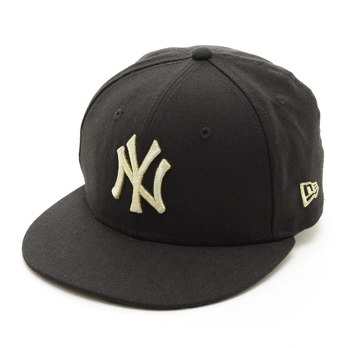 > △565611 NEW ERA ニューエラ キャップ 帽子 59FIFTY MLB NY 7(55.8cm) ニューヨーク ヤンキース NEW YORK YANKEES ブラック ゴールド