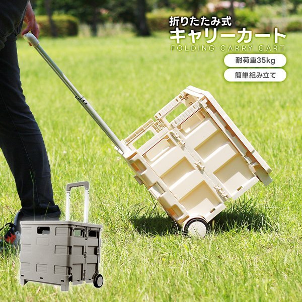 - キャリーコンテナ 折り畳み キャリーカート 大容量 耐荷重35kg フタ キャスター付 アウトドア ショッピング カート 台車 mermont ブラウン