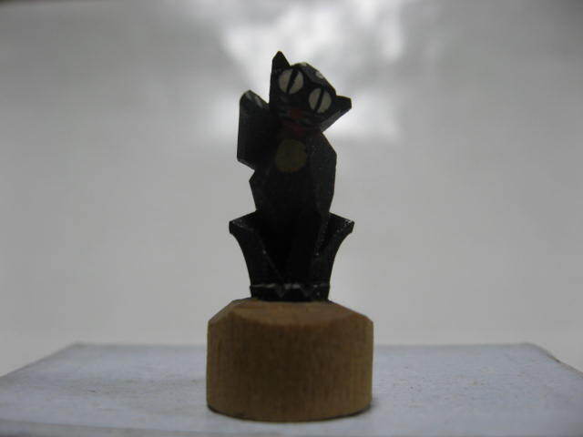 - ★昭和初期 『可愛いミニチュアの黒猫人形(右手招き)』 アールデコ動物一刀彫木工芸竹細工レトロ古民具縁起物★