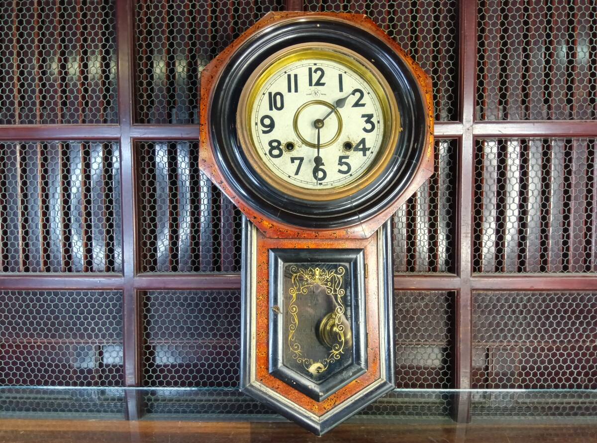 - K08-1013 アンティーク 古時計 掛時計 振り子時計 ゼンマイ式 林時計製 明治44年 動作品