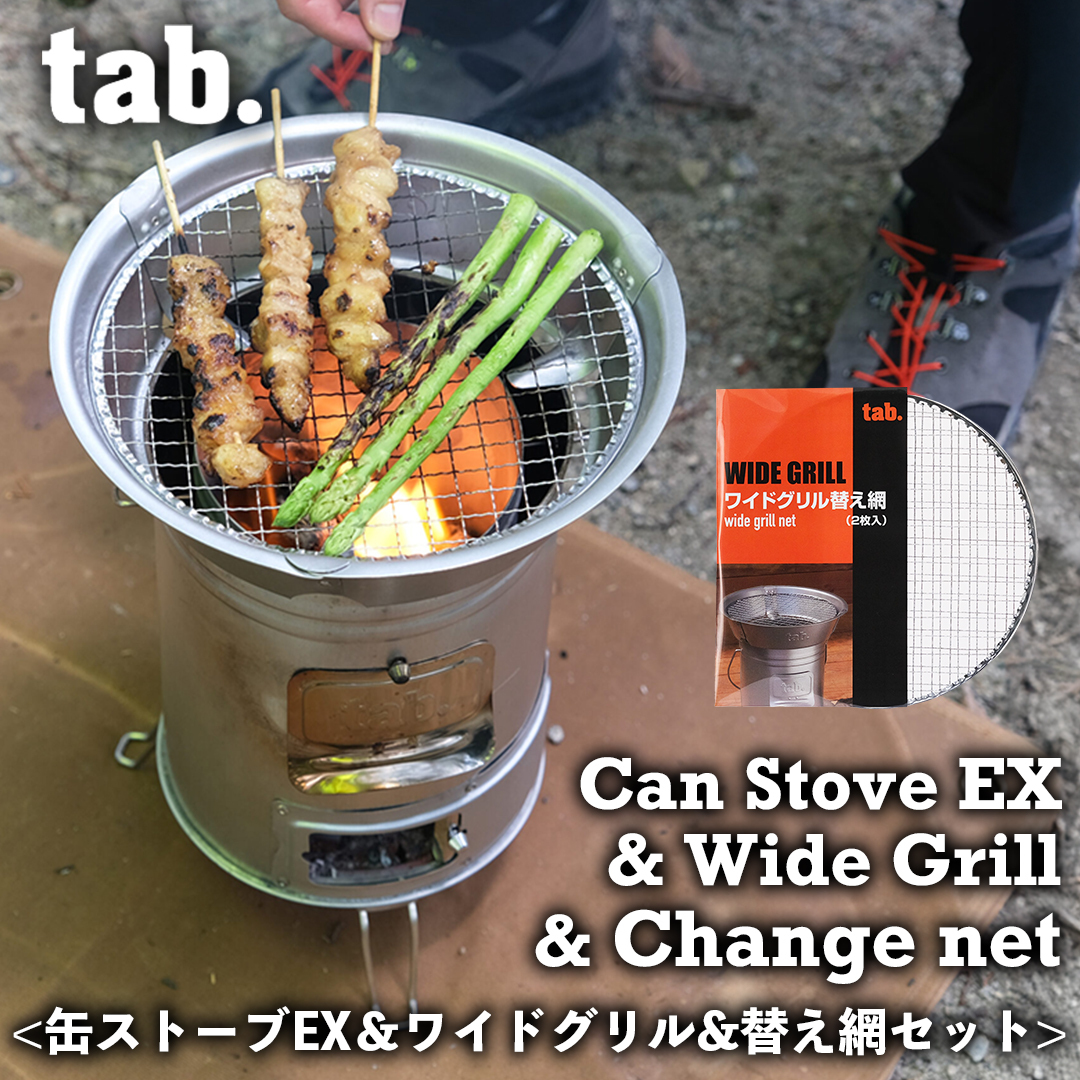 > tab. 缶ストーブEX &ワイドグリルEX & 替え網2枚 3点セット 二次燃焼 焚き火台 ウッドストーブ ストーブ