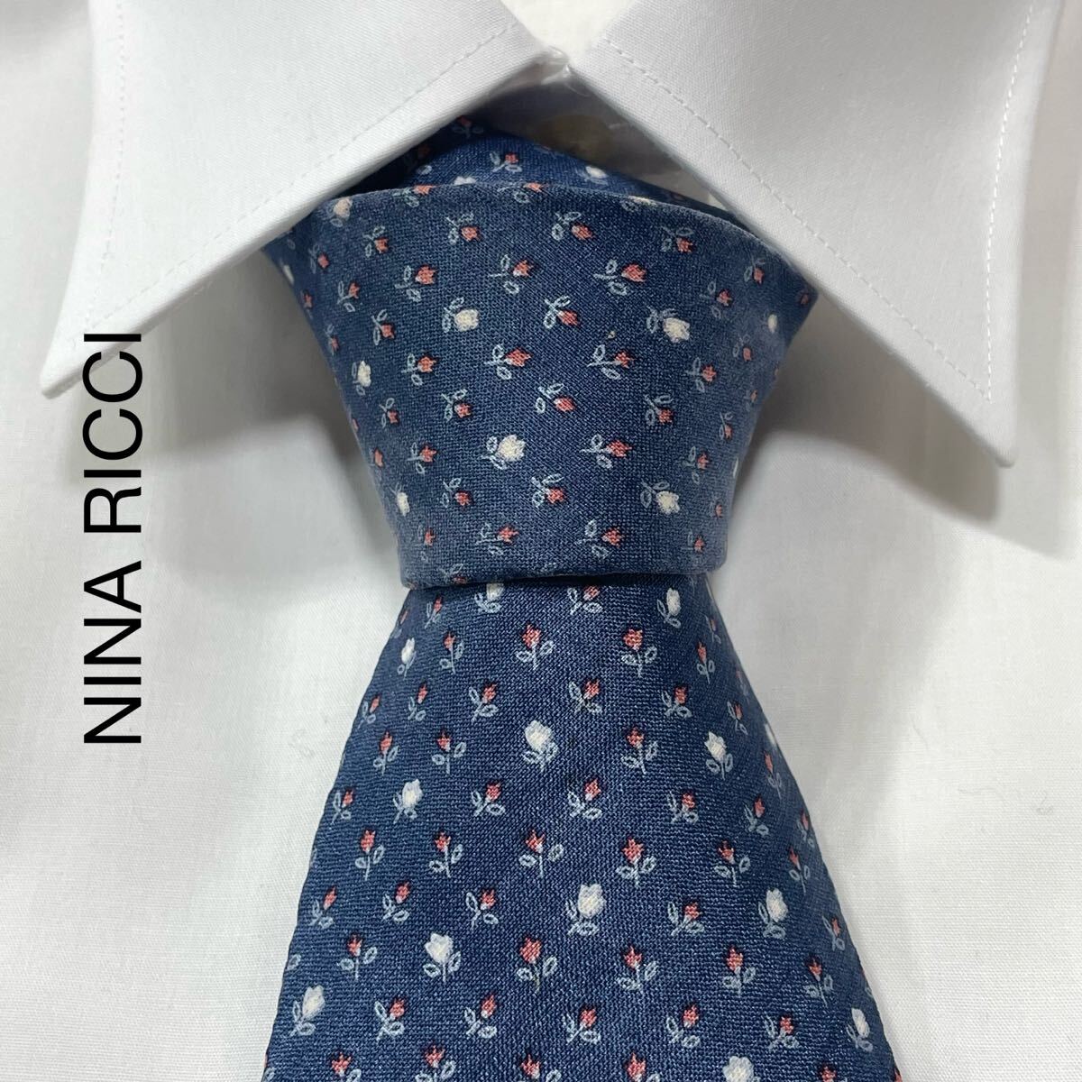 - NINA RICCI ニナリッチ 花柄 シルク ネクタイ 日本製 ブルー TG2984