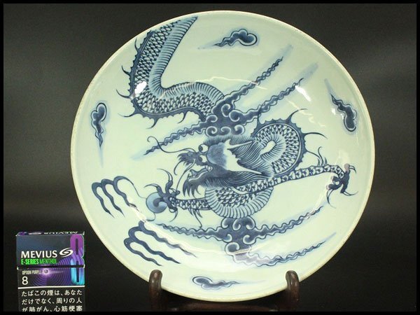 - 【銀閣】中国美術 青花 龍紋 皿 旧家蔵出 送料無料(A736)