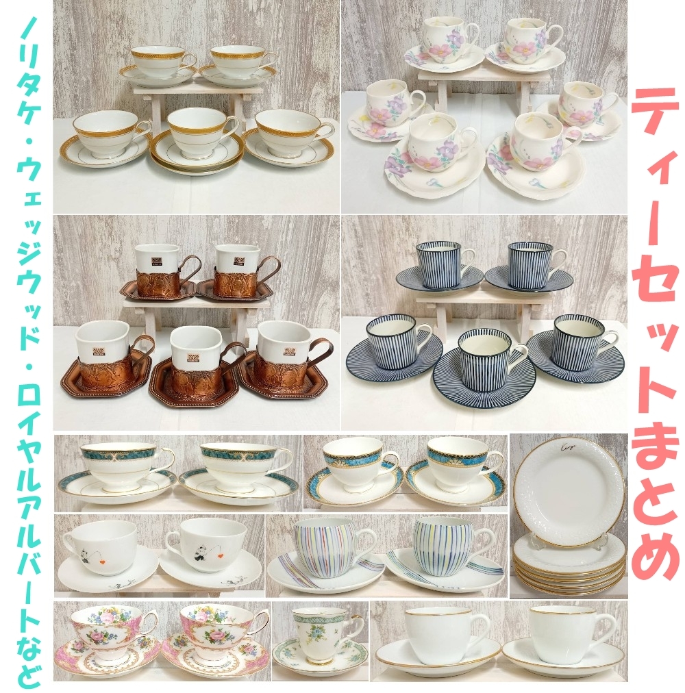 - [251003-1T]【中古品】≪ティーセットまとめ≫ノリタケ/ROYAL ALBERT/WEDG WOOD/FRANCEINE/KENZO/たち吉など
