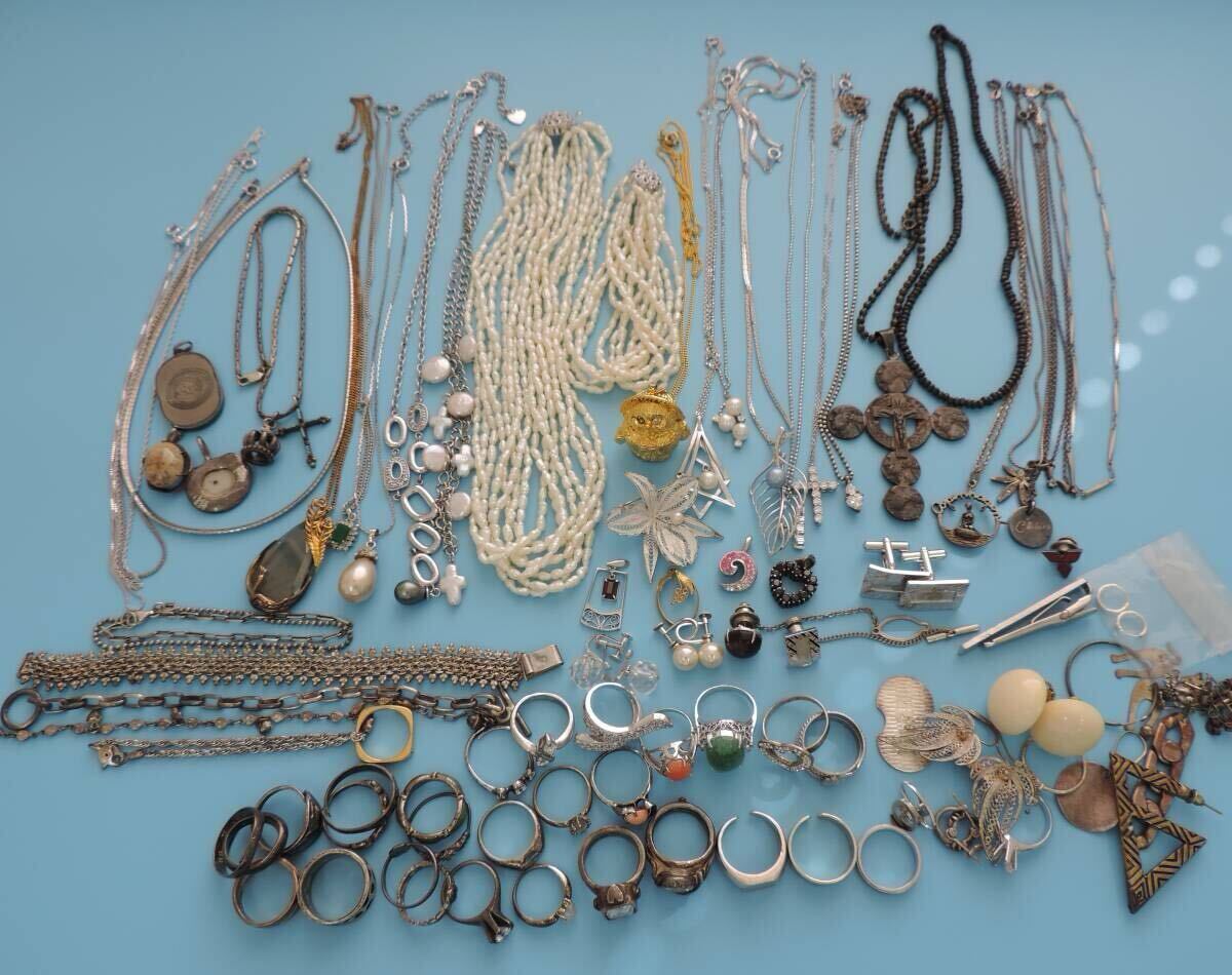> シルバー アクセサリー SILVER 925 SV SS まとめて 約500g 天然石 パール ネックレス ペンダントトップ 指輪 リング 他 刻印含 ジャンク