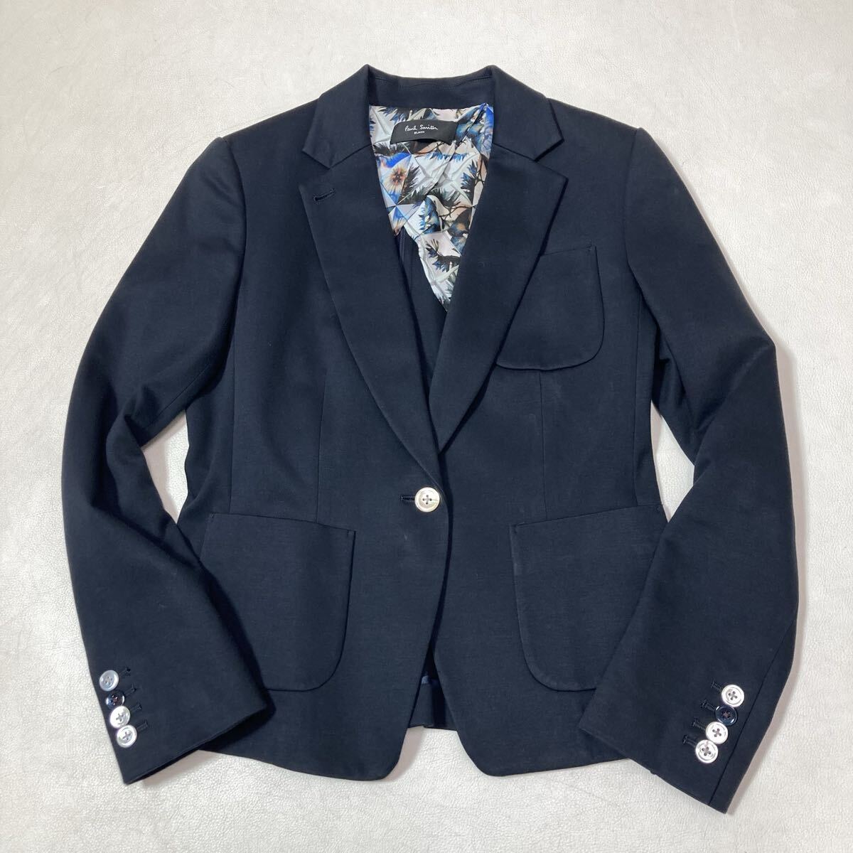 > 242 Paul Smith BLACK ストレッチ ジャージー テーラードジャケット レディース 40 黒 裏地花柄 フォーマル ポールスミス 51015G