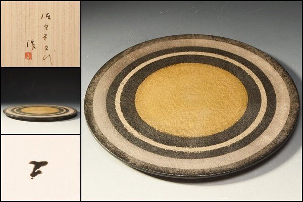 > U07766 東京芸大 佐々木文代 色絵磁器 ドット 皿 煎茶 盤 茶注敷 共箱 /G99