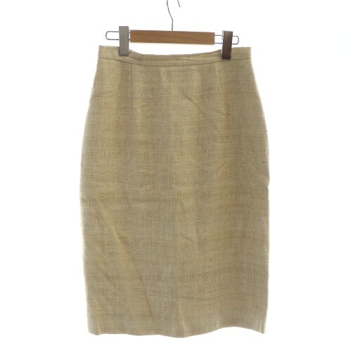 > クリスチャンディオール Christian Dior タイトスカート ミドル ジップフライ ロゴ 絹 シルク 麻 リネン 36 S ベージュ ■GY18