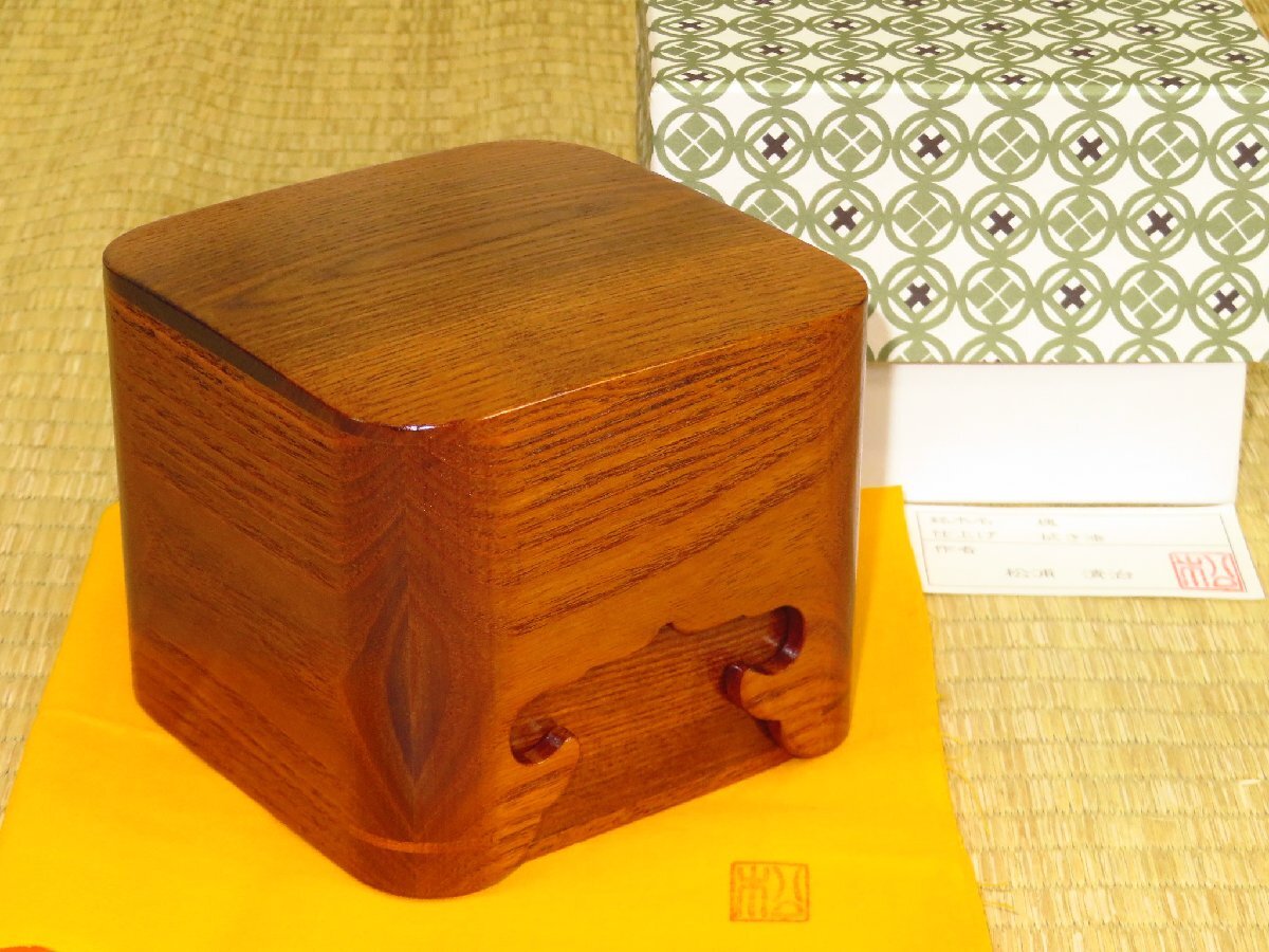 1000円スタート▲松浦清治作槐(えんじゅ)拭漆仕上隅丸将棋駒箱▲化粧箱付/新品